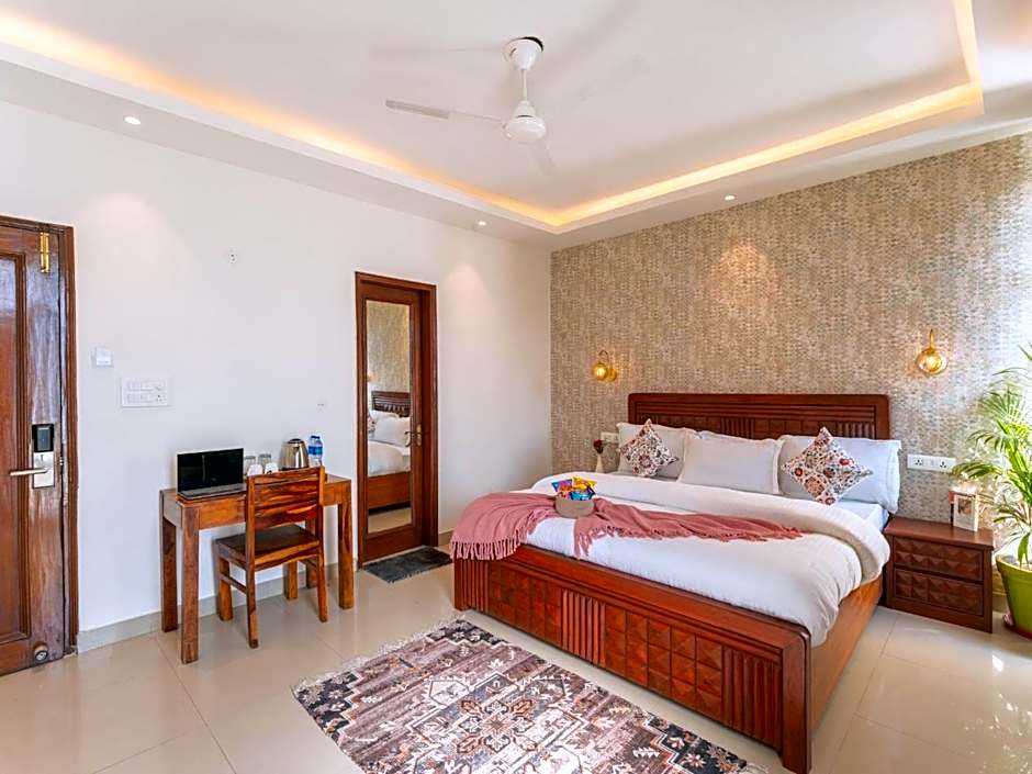 This room has a comfortable queen size bed, an private bathroom, air conditioning, an authentic wooden sofa, huge wardrobes, rich wooden flooring, proper ventilation, uninterrupted free internet 24X7, multiple international charging points, exquisite bed lamps, cloth hangers, kettle, mirrors, tea & coffee table.